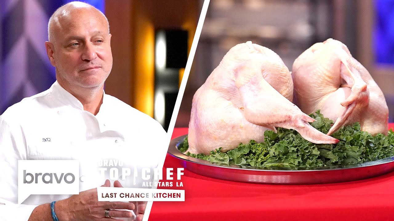 Tom Colicchio Challenges Eliminated Chefs To A Game Of Chicken Last Chance Kitchen S17 E3 Youtube